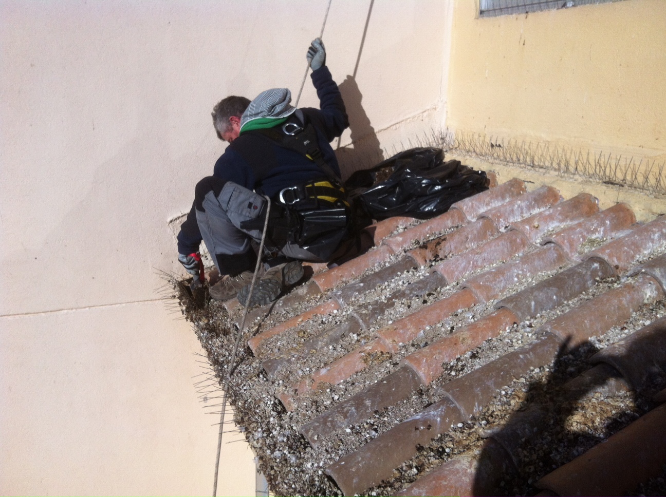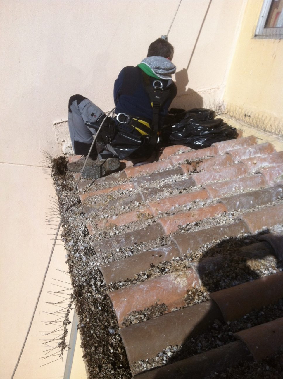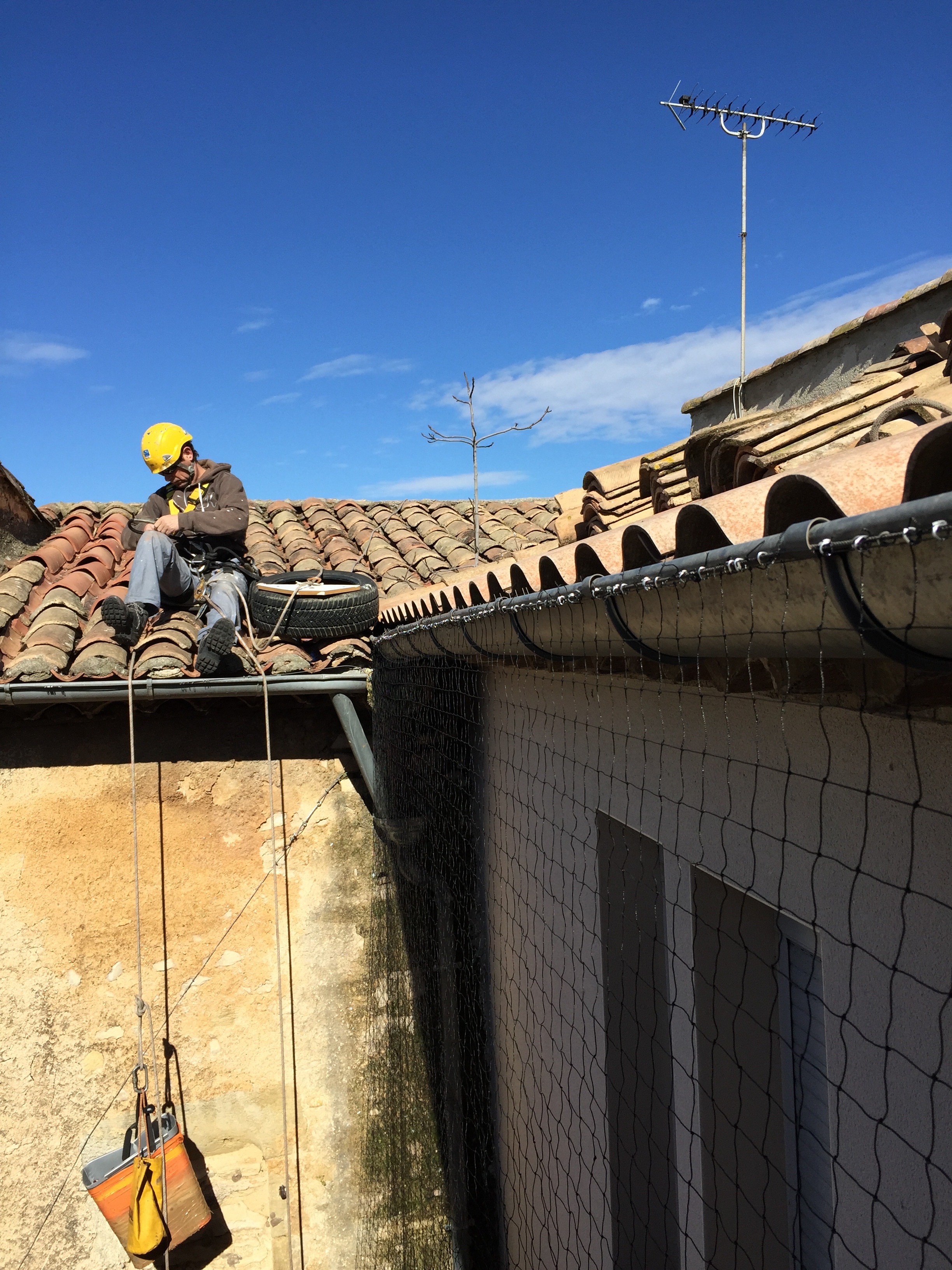 - Pose de pics anti-pigeons, protection par filets,