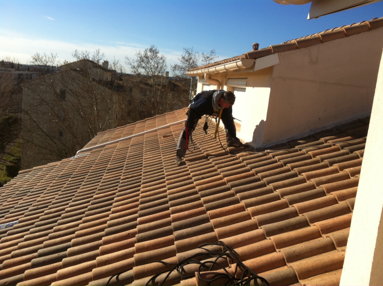 - Nettoyage de chéneaux, démoussage et traitement de tuiles en toiture,